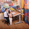 Но основной изюминкой данной модели можно назвать систему «газлифт», которая отвечает за подъём столешницы. С её помощью ребёнок легко сам сможет произвести настройку угла наклона, не прибегая к помощи взрослых. Вот так из простых и вполне очевидных дизайнерских решений вырисовывается общая картина уюта, комфорта и трогательной заботы о здоровье ребёнка.