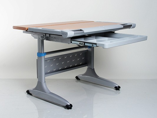 Благодаря задней приставке, рабочая поверхность столешницы значительно расширяется и позволяет легко расположить книги с тетрадями так, чтобы они не мешали занятиям малыша. Все же остальные школьные принадлежности легко поместятся в просторном выдвижном ящике и помогут обучить любимое чадо к порядку и организованности.