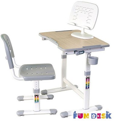 FunDesk Piccolino II – замечательный комплект, который создаст уют и комфорт для ребёнка в младших классах, поможет в правильном физиологическом развитии и защитит спину своего юного хозяина от различных угроз.