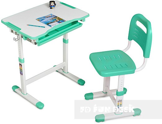 «ФанДеск» могут регулировать высоту парты под рост ребенка, а столешница может изменять угол наклона. Каждую модель можно оборудовать дополнительными аксессуарами. Парта «FunDesk» имеет множество ящиков для хранения канцелярских принадлежностей и тетрадей.