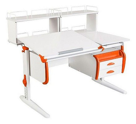 Парта 120 см с раздельной столешницей + тумба + задняя приставка + задняя двухъярусная приставка + боковая приставка 75 см