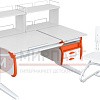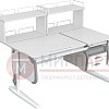 Парта 120 см с раздельной столешницей + тумба + 2 задние двухъярусные приставки